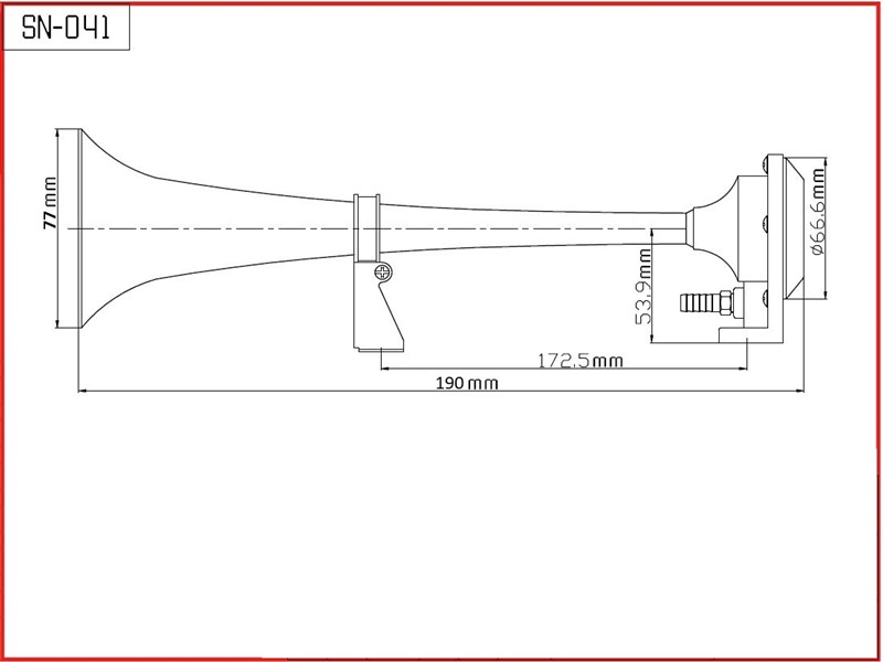 Krátký popis 1-trubková fanfára poháněná vzduchovým kompresorem dodávaným v sadě. Trubka je vyrobena z velice odo
