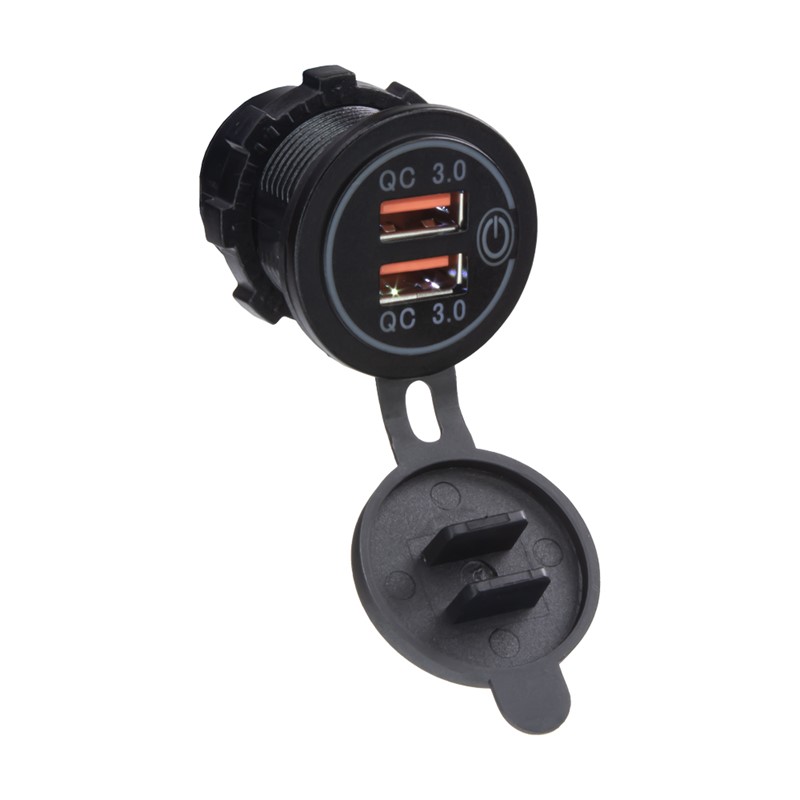 2x USB nabíječka do panelu, QC 3.0, s krytkou proti prachu a vlhkosti, bílé podsvícení a s možností vypnutí / zapnutí USB pouze dotykem.