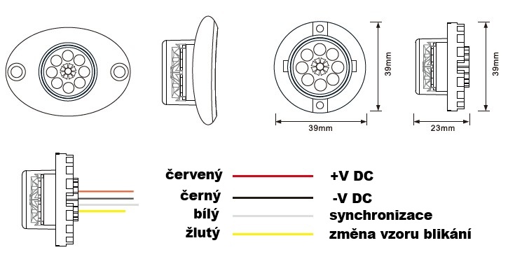 • rozměry: ø39 x 24 mm (samotné světlo)