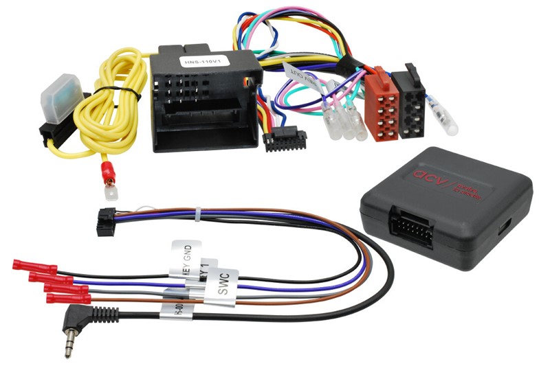 - univerzální propojovací adaptér pro jednotky se vstupem pro ovládání na volantu s JACK 3,5mm konektorem, volným vodičem i pro jednotky s funkcí "učení" funkcí tlačítek na volant