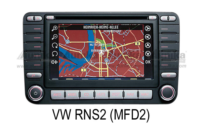 Automobily s OEM autorádiem Premium6 (CQ-JV1060L) / Monsoon / Delta 6 / RCD200 / RCD300 / RNS310 / RCD500 / RNS2 s FAKRA konektorem a CAN-Bus ovládání na volantu