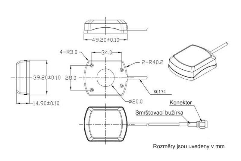 GPS univerzální vnitřní, magnetická aktivní anténa