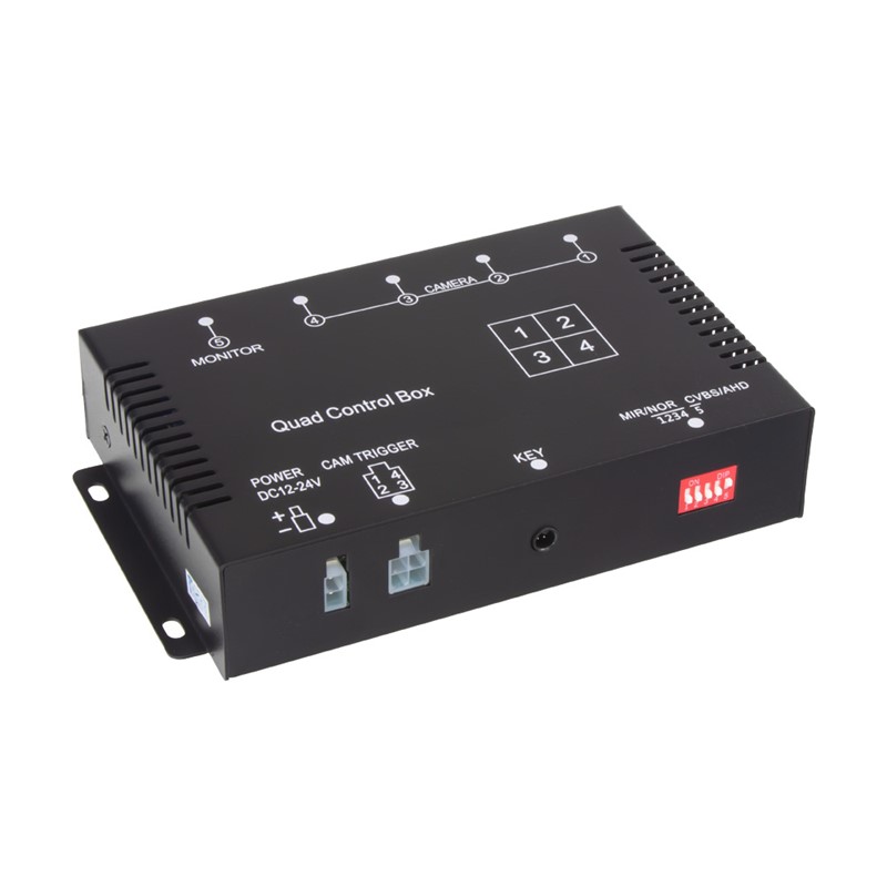 • možnost výběru obrazu libovolného kanálu ze 4 kamer pomocí spouštěcího drátu nebo manuálně pomocí ovl. panelu