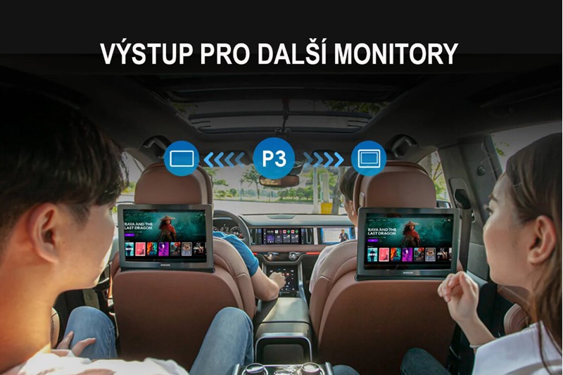 • HDMI výstup – Možnost připojení externí obrazovky (např. zadního monitoru).