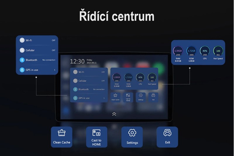 • Operační systém Android 12 – Možnost instalace aplikací do jednotky (Netflix, YouTube, Spotify, Google Maps atd.).