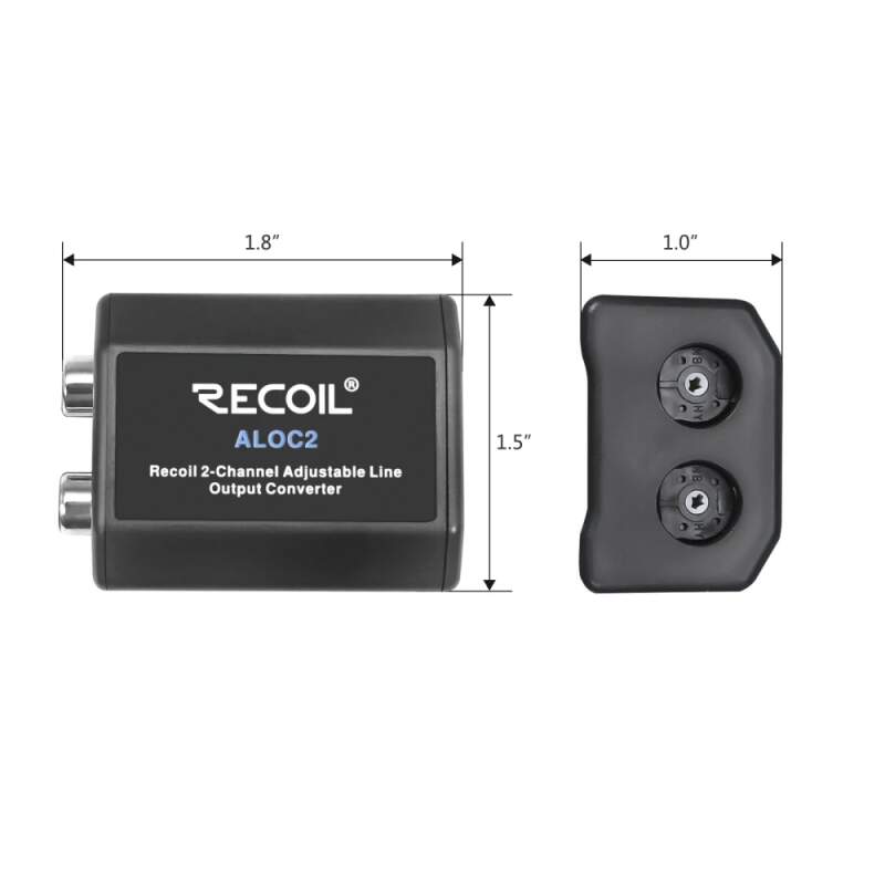 Nastavitelný 2-kanálový linkový výstupní převodník SLOC2 od společnosti Recoil Audio je linkový výstupní převodník pro tovární rádia o výkonu 2 až 50 wattů na kanál, který akceptuje vstup na úrovni reproduktorů a poskytuje stereo RCA výstupní signál pro přidání dodatečně instalovaného zesíleného audio systému.