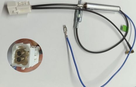 Krátký popis Mini Fakra 4-pinový konektor na SMB 90° samec (DAB) + DIN samec (AM / FM).