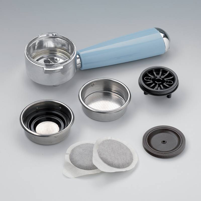 • Držák filtru s možností: 2 šálky mletá káva, 1 šálek mletá káva /1 E.S.E. pod