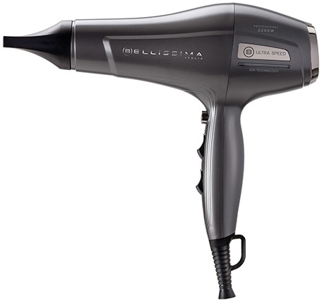 Bellissima, profesionální AC motor, keramicky potažená mřížka, 2 rychlosti, 3 teploty, studený vzduch, odnimatelný filtr, 1,8 m kabel, praktická taška, nástavce: difuzér, úzký koncentrační, 2200 W