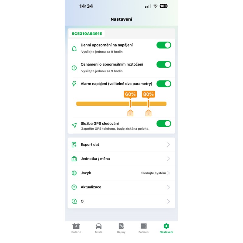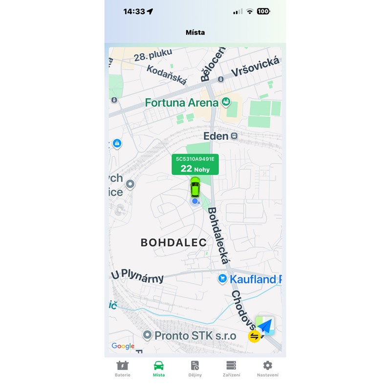 • přehledná aplikace v češtině (grafy, alarmy, sledování trasy i polohy vozidla)