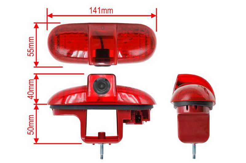 Kamera je integrována ve třetím brzdovém světle umístěném v levých křídlových dveřích, které nahrazuje originální brzdové světlo. Světelná signalizace brzdového světla je zajištěna integrovanými LED diodami. Připojovací konektor je schodný s originálním konektorem.