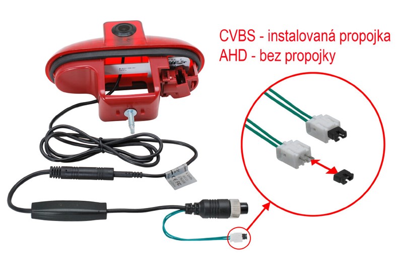 AHD / CVBS parkovací kamera integrovaná ve třetím brzdovém světle instalovaném v zadních křídlových nebo výklopných dveřích.