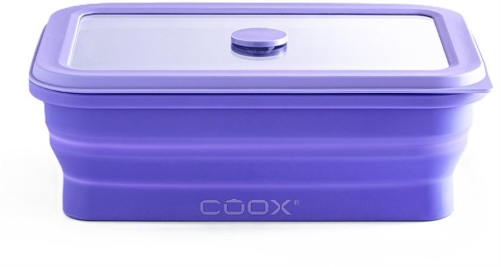 Skládací dóza coox s objemem 1 litr je vyrobená ze silikonu (bez BPA)a skla. Je odolná pro teploty od -40 °C do + 230 °C a je tak vhodná do trouby, horkovzdušné fritézy, lednice i mrazáku.
