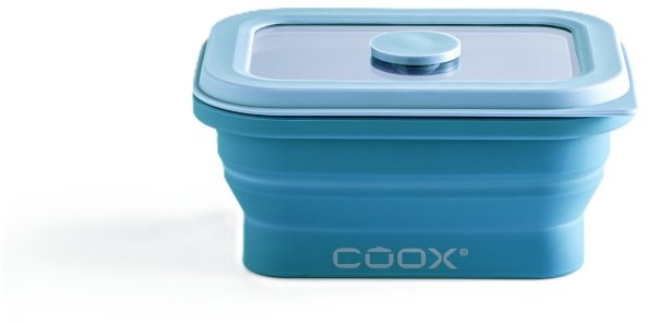 Skládací dóza coox s objemem 250 ml je vyrobená ze silikonu (bez BPA)a skla. Je odolná pro teploty od -40 °C do + 230 °C a je tak vhodná do trouby, horkovzdušné fritézy, lednice i mrazáku.
