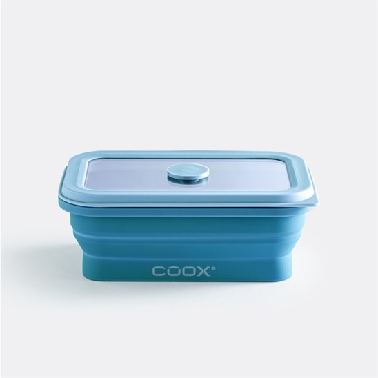 Krátký popis Skládací dóza coox s objemem 450 ml je vyrobená ze silikonu (bez BPA)a skla. Je odolná pro teploty od -40 °C do + 230 °C a je tak vhodná do trouby, horkovzdušné fritézy, lednice i mrazáku.