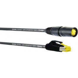 Due to the utilized bulk cable CCAT 5e, our CAT 5 CSE NH 5 cable is particularly suited for intensive stage use and even suitable for drag chain use. Thanks to the halogen-free PUR jacket, it can be used both indoors and outdoors. The etherCON connector NE8MX-B-1 is encased in a metal housing and made by NEUTRIK® and features one HIROSE® network RJ45 connector and one HIROSE® RJ45 with a robust clip protection sleeve.