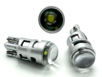 Náhradní LED žárovka s paticí T10, 1x LED čip CREE 5W + rozptylová krycí čočka, vhodná do parkovacích světel u novějších vozidel. Díky teplotě světla 6000 K jsou LED žárovky ideálním doplňkem do reflektorů s xenonovými výbojkami, kde žluté světlo obyčejné žárovky působí rušivě.