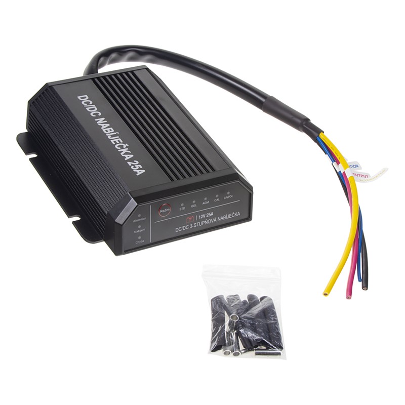 DC-DC 25 A Inteligentní nabíječka baterií je určena k nabíjení sekundární (pomocné) baterie během jízdy pomocí primární (startovací) baterie připojené k alternátoru.
