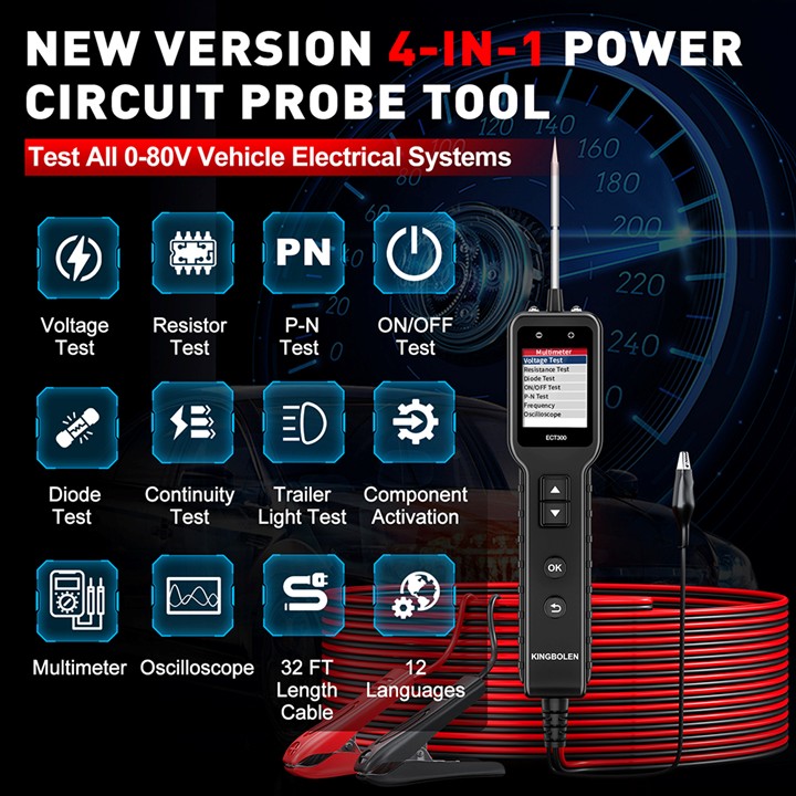 Víceúčelový tester/měříci přístroj automobilových elektrických obvodů slouží k širokému rozsahu autoelektrikářských prací.