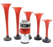 3-trubkové fanfáry poháněné vzduchovým kompresorem se silným a okamžitým zvukem. V sadě je malý komp