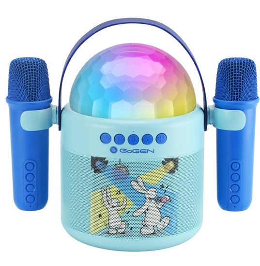 přenosný reproduktor; RMS výkon 6,5 W; Bluetooth; přehrávání MP3; výdrž baterie 5 h (50% hlasitosti); efekty světelné/hlasové; vstupy USB/AUX/MicroSD; Karaoke (2x bezdrátový mikrofon v balení); USB-C nabíjecí konektor; barva modrá; rozměry 21,5x16,5x12,5 cm; hmotnost 0,76 kg
