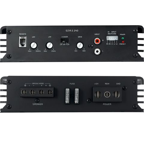 GZIA 2.240 2kanálový vysoce kvalitní zesilovač třídy A/B550wattů2kanálový zesilovač s obvodem třídy A/B s integrovanou aktivní výhybkou a černým eloxovaným chladičem /Variabilní aktivní výhybka a zesílení basůStabilní zdroj napájeníVelké terminályEloxovaný chladič s nápisem Ground ZeroVysoceúrovňový vstup s funkcí automatického zapnutíBass Boost                     ○ Dálkové ovládání             b x d x v)          192 x 284(312)x 49 mm