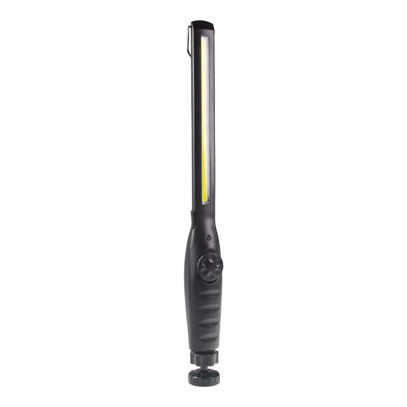 Nabíjecí pracovní / rekreační LED lampa. Jako zdroj světla má 5W COB LED modul. Konstrukčně je COB LED tvořena jednotlivými čipy, umístěnými na plošném spoji a pokryta vrstvou luminoforu, vytvářející dohromady homogenní svíticí plochu. Tyto moduly pak vyzařují světlo téměř souvisle po celé ploše. Díky montáži přímo na hliníkový plát se moduly méně zahřívají a významně se tak prodlužuje životnost. Montážní lampa má praktický design s hákem pro uchycení a magnetem. Nespornou výhodou je absence kabelu, který je v mnoha případech důvodem pádu a poškození běžných zářivek.