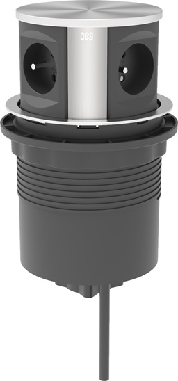 Je určena pro montáž do kancelářských stolů, kuchyňských linek apod.Instalace je jednoduchá, stačí vyvrtat otvor o průměru 12cm.Tento blok má 4 zásuvky.Lišta má pneumatický výsuv, takže stisknutím se automaticky vysune.Technická charakteristika: 4x zásuvky 2P+T, 230V~ MAX 3680W,kabel: 1.5mm2.