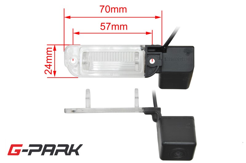 CCD parkovací kamera pro instalaci na místo osvětlení zadní registrační značky. Součástí kamery je místo pro umístění žárovky z původního světla pro registrační značku.