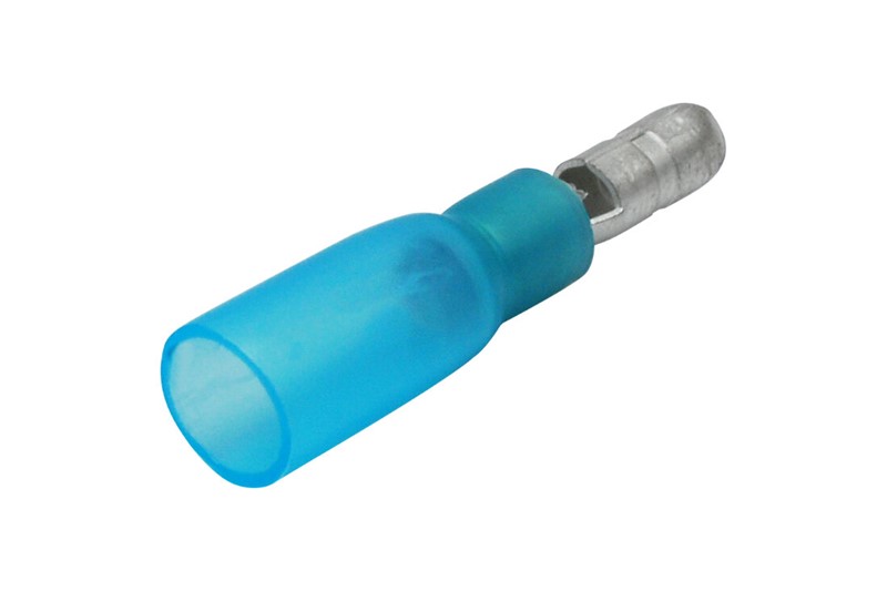 Izolovaný konektor faston - samec plochý Ø4mm izolovaná teplem smrštitelnou trubicí s lepidlem.