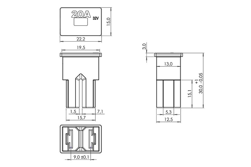 - viditelnost pojistného vlákna shora přes průhledný kryt