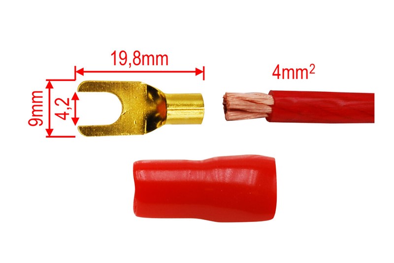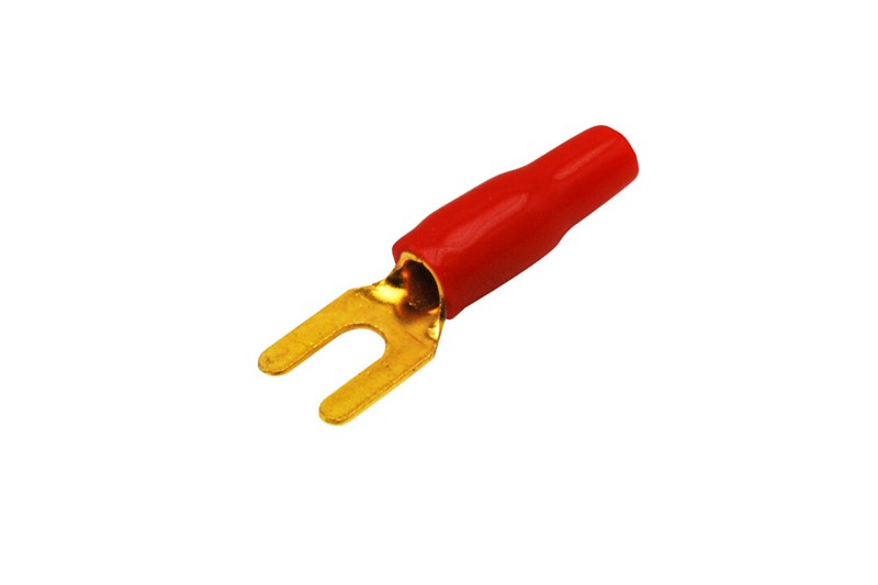 Krátký popis Kabelová vidlička rudá pro kabel 4mm² - 50ks