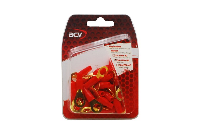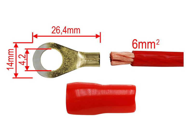 Krátký popis Kabelové oko zlaté pro kabel 6mm² / 8,4mm / rudá izolace - 50ks