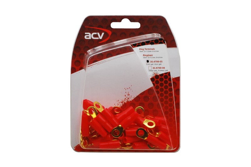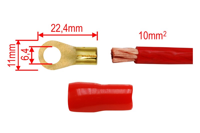 Krátký popis Kabelové oko zlaté pro kabel 10mm² / 6,4mm rudá izolace - 50ks