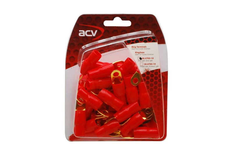 Krátký popis Kabelová oko zlaté pro kabel 20mm² / 6,4mm rudá izolace - 50ks