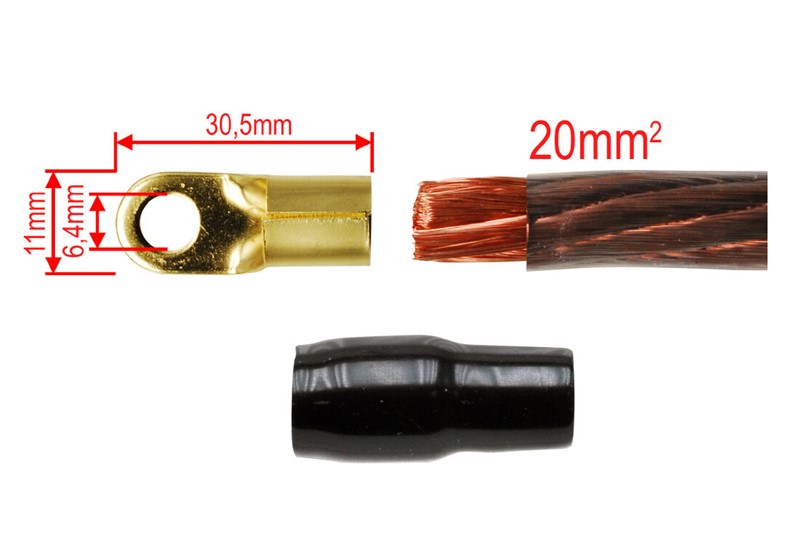 Krátký popis Kabelová oko zlaté pro kabel 20mm² / 6,4mm černá izolace - 50ks