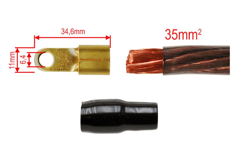 Krátký popis Kabelová oko zlaté pro kabel 35mm² / 6,4mm černá izolace 50ks