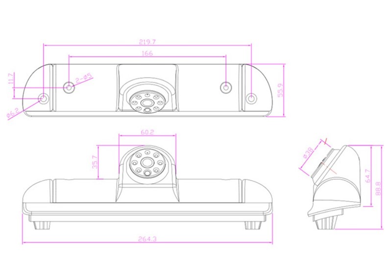 Barevná kamera zabudovaná ve 3. brzdovém světle. Součástí je LED brzdové světlo pro vozy Citroën, Fiat a Peugeot.