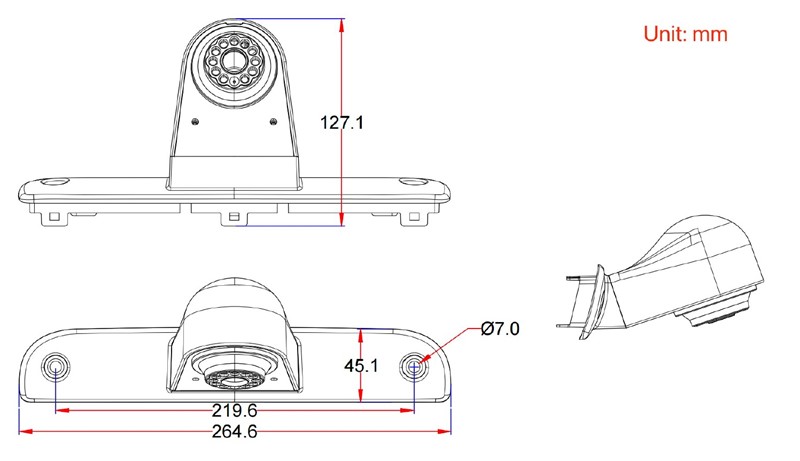Barevná kamera zabudovaná ve 3. brzdovém světle. Součástí je LED brzdové světlo pro vozy Citroën, Fiat a Peugeot. Vhodné např.: pro kombinaci s monitory, nebo s adaptéry mi-xxx pro připojení k originální navigaci.