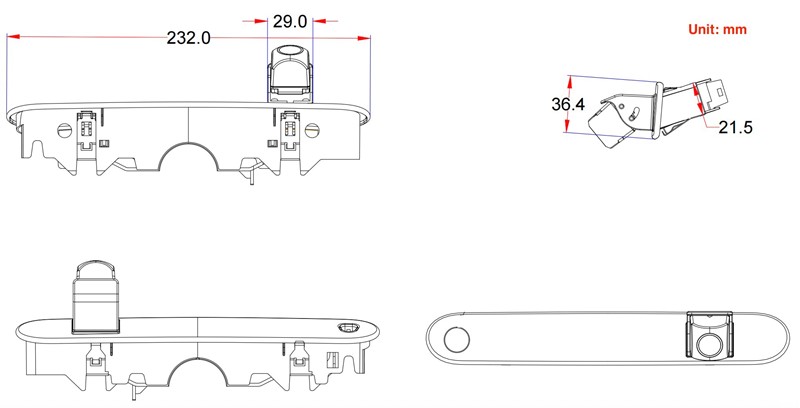 Barevná kamera zabudovaná v zadních dveřích. Nahrazuje originální kryt brzdového světla.