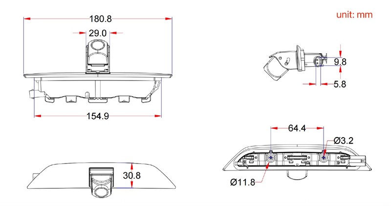 Montáž: Vyjmete kryt 3. brzdové světlo a místo něj vložíte do originálního otvoru tuto kameru.