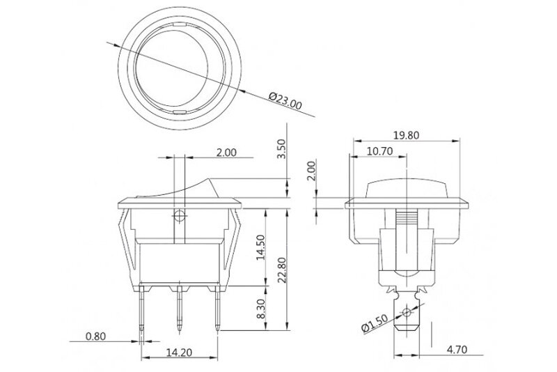 Krátký popis Kolébkový spínač kruhový 20mm / 12A