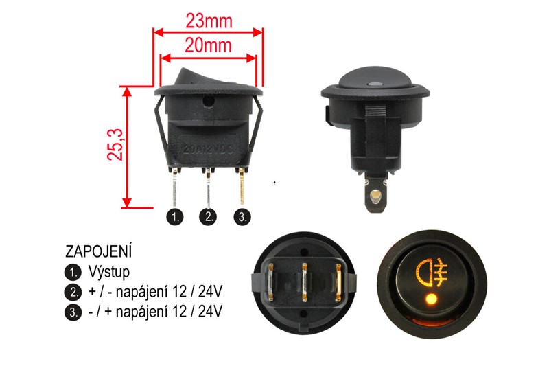 Krátký popis Kolébkový spínač - oranžové LED podsvětlení symbol mlhových světel, 12V / 16A