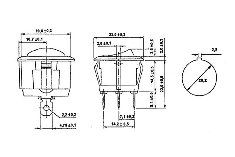Krátký popis Kolébkový spínač kruhový 20mm / 6A s LED rudá