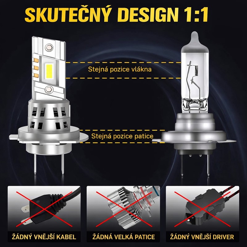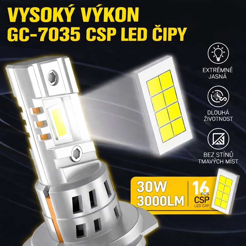 Nová generace mini LED autožárovek v kompaktním designu s paticí H7 - bílá, LED moduly GC-7035.