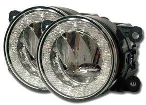 Kombinace mlhových světel se světly pro denní svícení a pozičními světly. Vhodné např. pro výměnu originálních mlhovek a následné využití i pro denní svícení. Světla je vybavena elektronikou, která zajistí automatické rozsvícení denního svícení po zapnutí zapalování a zapnutí pozičních světel při zapnutí pozičních světel vozidla.