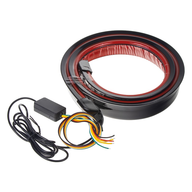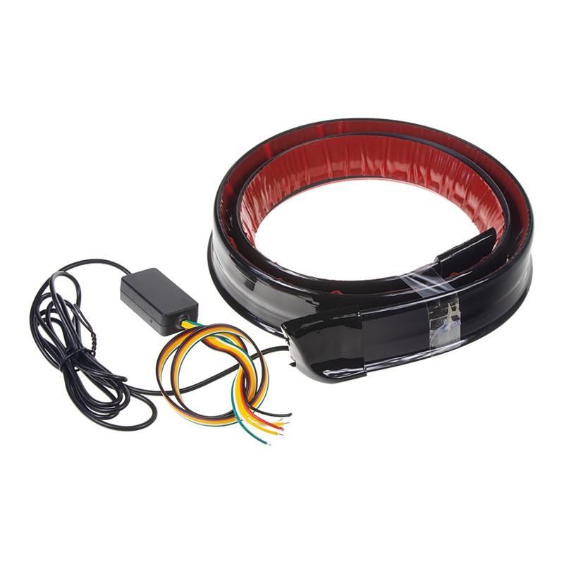 Světelný LED pásek na spoiler - barva LED červená, černý design. Vhodný pro dekoraci automobilů, zvýraznění vozu, montáž např. na zadní spoiler, nárazník, kufr vozu.