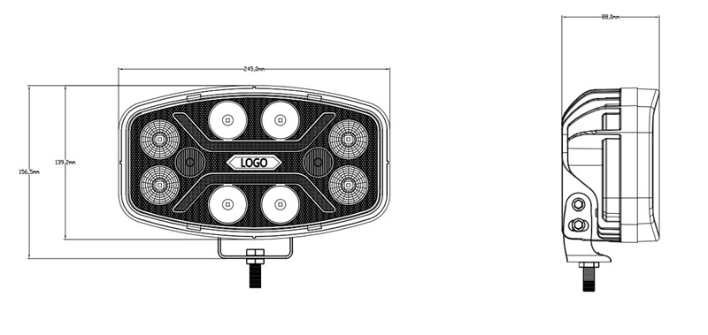 80 W dálkové LED světlo s pozičním a oranžovým výstražným světlem, vhodné zejména pro offroad vozy, nákladní automobily, bagry, nakladače a jinou pracovní techniku.