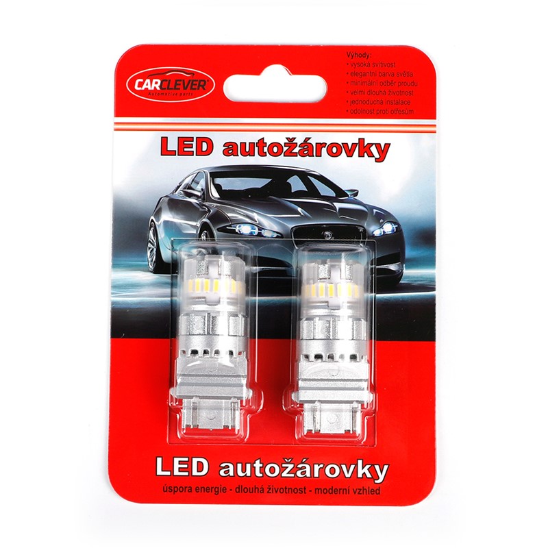 Krátký popis Nová generace A- CLASS LED autožárovek s paticí T20 (3157), bílá, dvouvlákno.   Technické parametry • patice T20 (3157) • barva světla: bílá • světelný zdroj: 18x SMD LED 4014 + 5x SMD LED 3030 • světelný tok (skutečný) 620 LM • 360º úhel svícení • akrylový kryt, který rozptyluje světlo a chrání LED čipy • tělo z leteckého hliníku zajišťuje výborný odvod tepla • vestavěná elektronika hlídá konstantní proud • velmi dlouhá životnost (až 50 000 h) • odolné otřesům, častému zapínání a vypínání • napájecí napětí: 9 V - 18 V • proudový odběr: 110 ± 20 mA / 540 ± 40 mA • pracovní teplota: od -40⁰C do +85⁰C • rozměr žárovky: ø 18 mm, délka 47 mm • cena za ks, balení 2 ks (pár)   Vlastnosti • vynikající do vozidel, kde dochází k častému praskání klasických žárovek • vysoká svítivost • pro všechny osobní vozy, dodávky a motocykly s palubním napětím 12 V  • vzhledem k vyššímu odběru proudu nehlásí ve většině vozidel s hlídáním žárovek chybu • tato žárovka nemá oproti jiným T20 spojené země, takže ji lze použít i do vozidel s jiným zapojením
