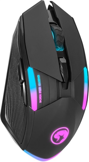 herní myš;optika-senzor SPCP193;6 plně programovatelných tlačítek;Nastavitelné DPI:1000-1600-3200-6400;Podsvícení:6 monochromatických efektů-možnost vypnutí;Odezva:125Hz;Připojení:kabel USB 2.0(1,4m);Podpora:Win 7/8/10/11;Typ spínače:Huanyu-až 3 mil.kliknutí;Macro:ano;Max.rychlost sledování:250 IPS